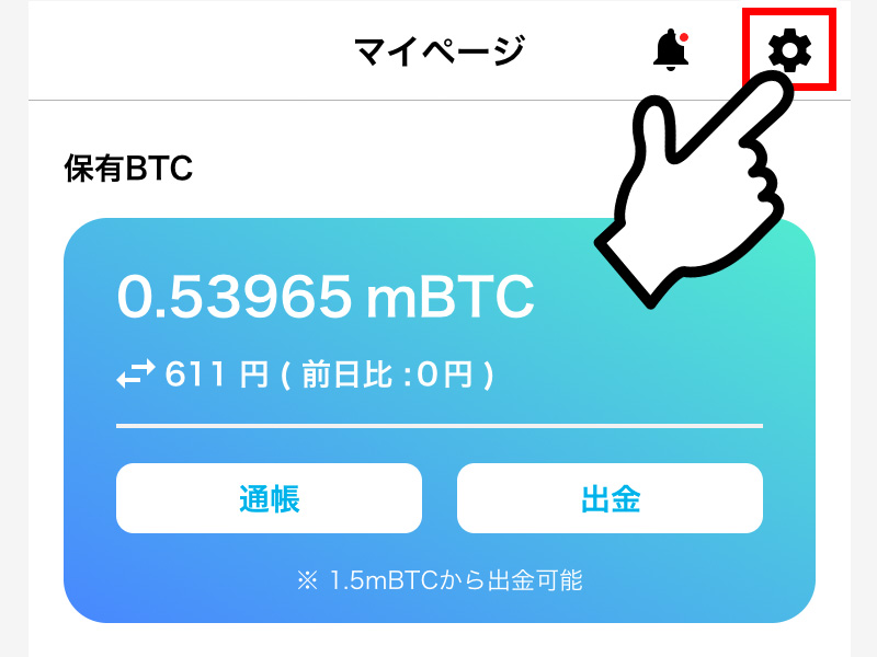 画面右上の歯車のマーク(設定)をタップします。