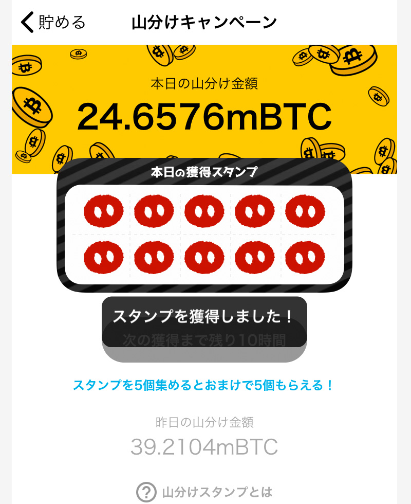 広告費やビットコイン価格の変動によって還元金額が変動するので、毎日参加しながら、山分け金額もチェックしましょう。