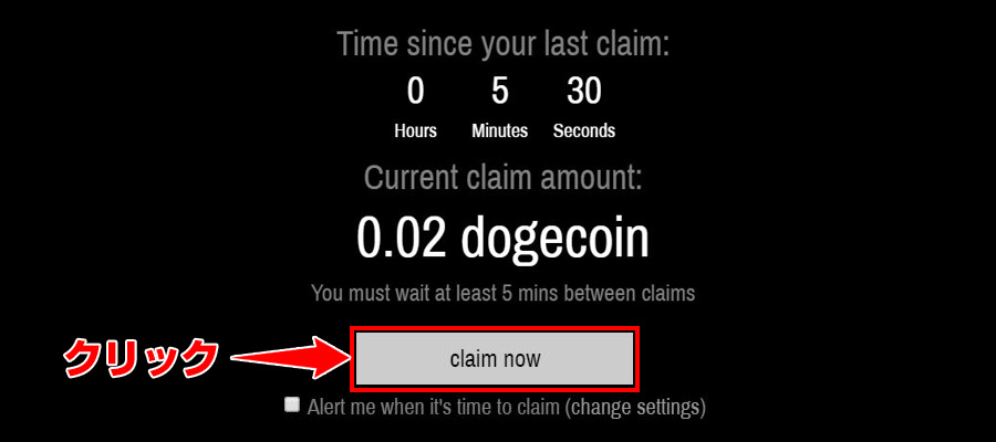 最大にドージコインを受取りたい場合は5分ごとに受取るほうが沢山ドージコインを入手できます。