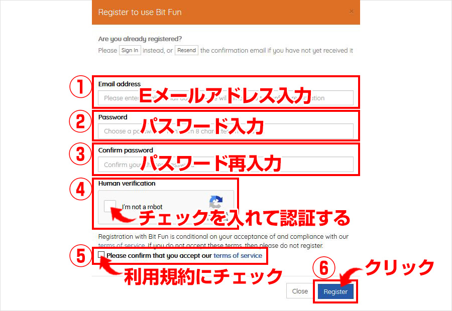 Bit Fun(ビットファン)の登録は簡単です。2ステップです。