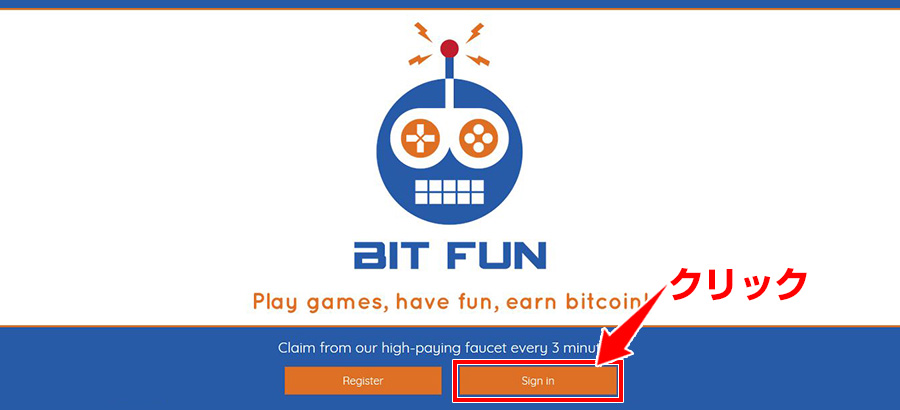 BitFunトップページにある「Sign in」をクリックして下さい。