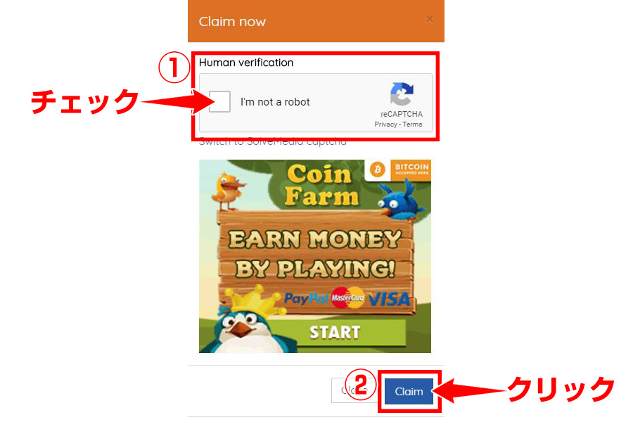 3分間に1度 「Claim now!」 をクリックして下さい。