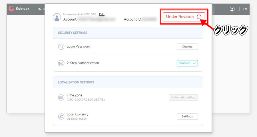 『Under Revision』は、KYC申請中です。