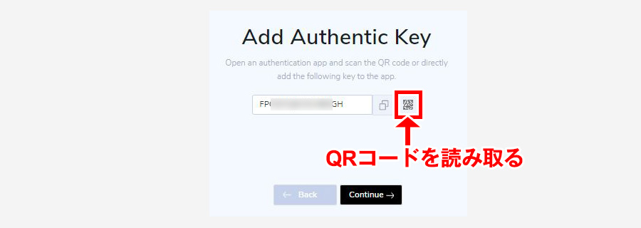 認証コードをコピーしたら登録画面に戻って認証コードを入力。