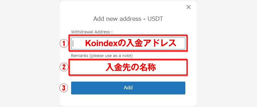 間違った際は、Koindex に着金しませんので、ご注意を!!!