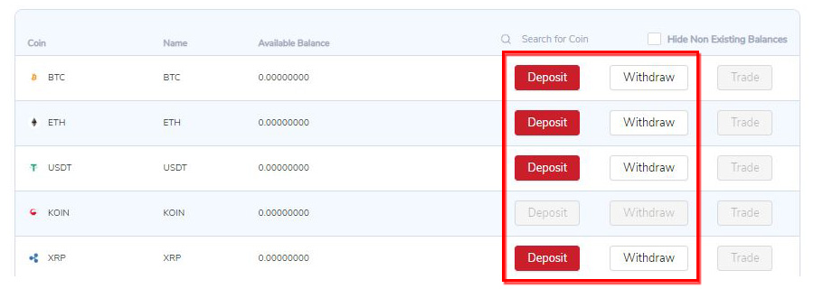 入金が『Deposit』で、出金が『Wiyhdraw』です。