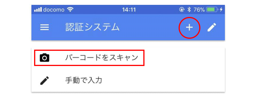 アプリを開いて、右上の「+」ボタンから「バーコードをスキャン」を選びます。