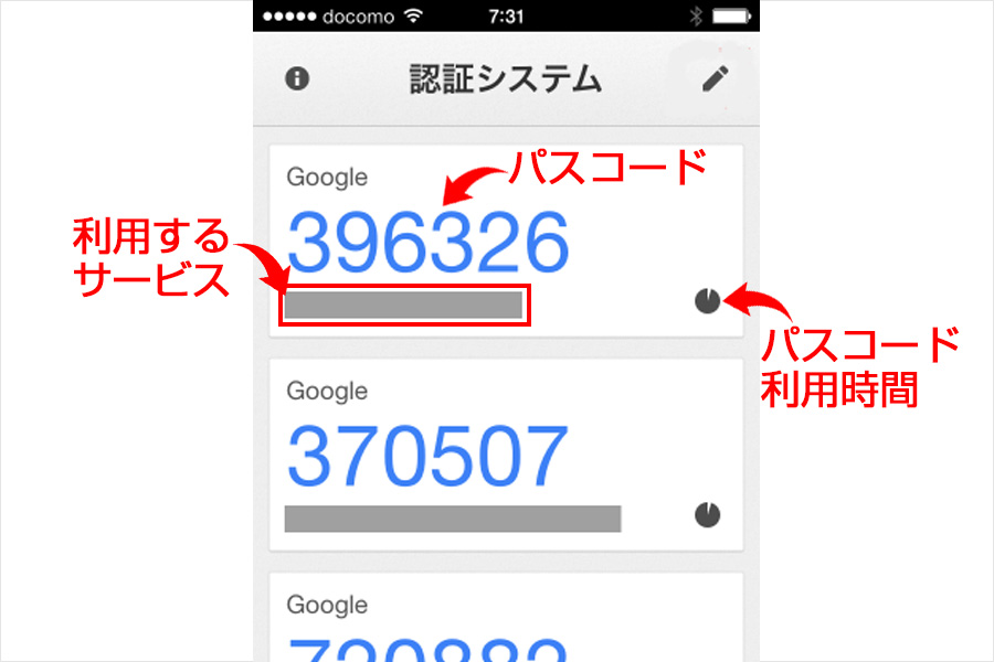 2段階認証のアプリを開き、一定時間しか使えない6ケタのコードを入力することで、ログインが完了します。