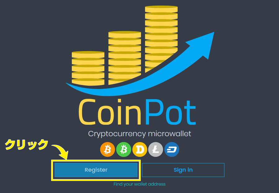 CoinPot対応Faucet については、この後に紹介しております。まずはCoinPotの使い方を確認しておきましょう。