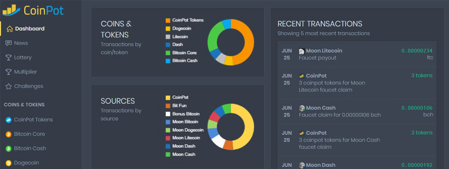 CoinPot (コインポット )は 7種類のFaucet(フォーセット)で無料で貰った暗号通貨をまとめて一括管理することが出来ます!