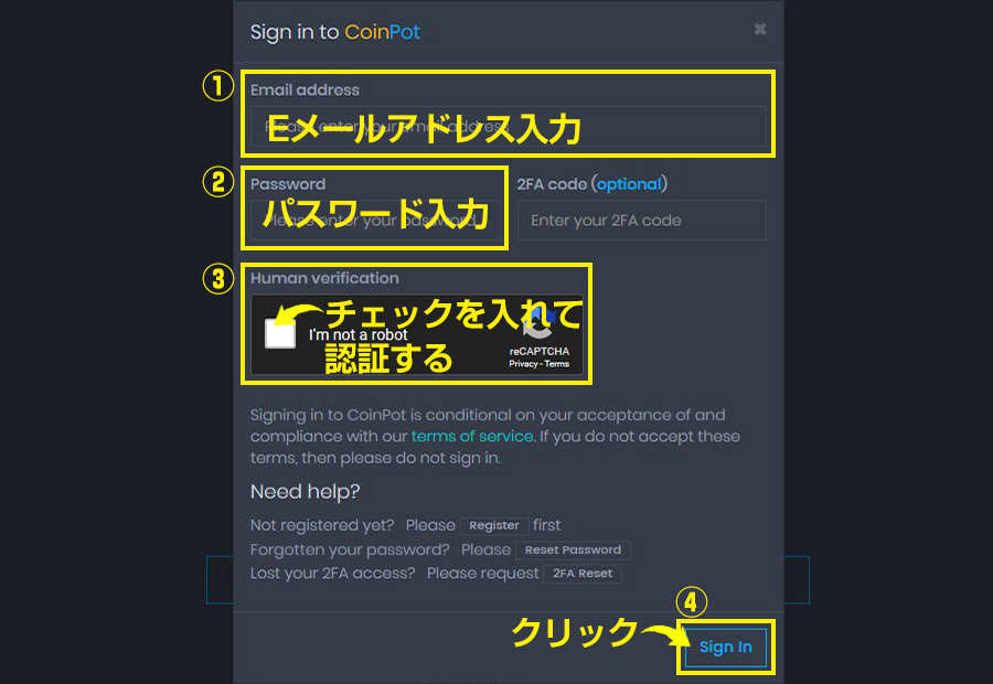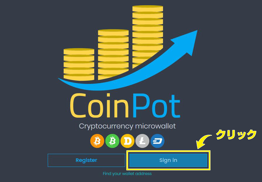 すると再度CoinPotが開くので「Sign in」をクリックします。